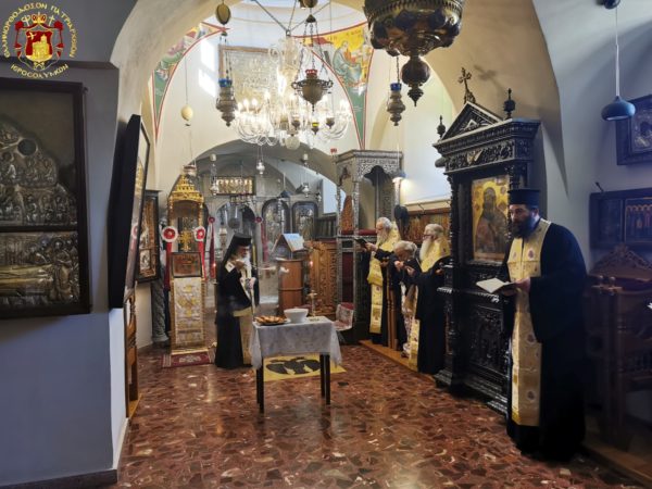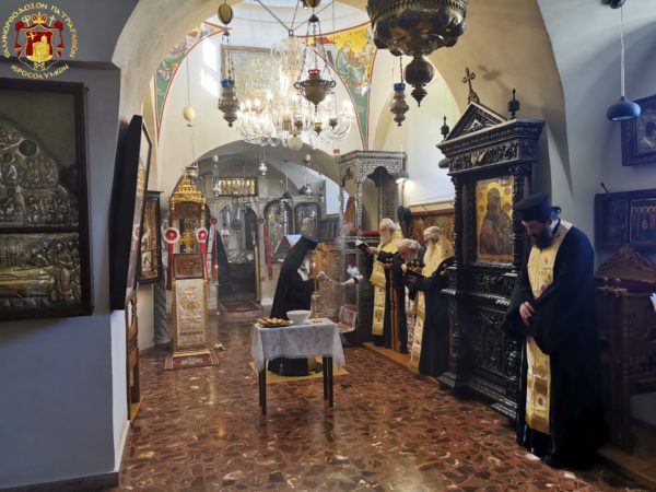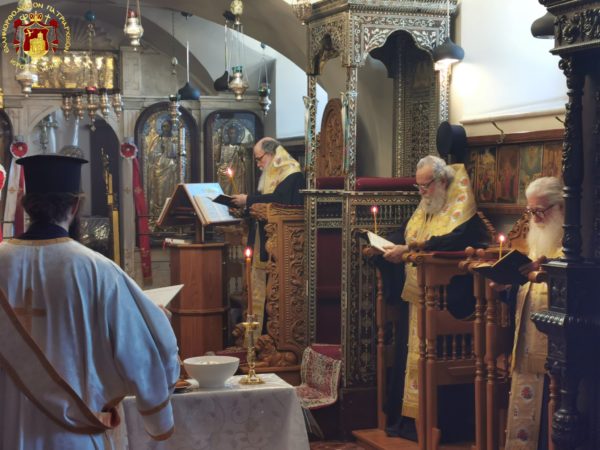 Ψυχοσάββατο της Πεντηκοστής αύριο και σήμερα μετά τον Εσπερινό διαβάστηκαν τα ονόματα των κεκοιμημένων Αγιοταφιτών Πατέρων στον Ιερό Ναό Αγίων Κωνσταντίνου και Ελένης στην Παλιά Πόλη της Ιερουσαλήμ.