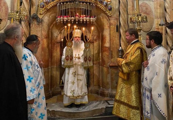Τρισαρχιερατικό συλλείτουργο τελέστηκε χθες, Κυριακή 17 Σεπτεμβρίου, στον Πανίερο Ναό της Αναστάσεως στα Ιεροσόλυμα. Της Θείας Λειτουργίας προέστη ο Μητροπολίτης Αγίας Πετρούπολης κ. Βαρσανούφιος. Συελλειτούργησαν ο Αρχιεπίσκοπος Γεράσων κ. Θεοφάνης και Επίσκοπος Μοράβιτς κ. Αντώνιος (Πατριαρχείο Σερβίας).