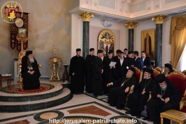 Ακολούθως στην αίθουσα του θρόνου ο Μακαριώτατος προσφώνησε τους παρισταμένους και εν συνεχεία ακολούθησε μικρή γιορτή με τους μαθητές της Πατριαρχικής Σχολής της Σιών να ερμηνεύουν επίκαιρα τραγούδια.