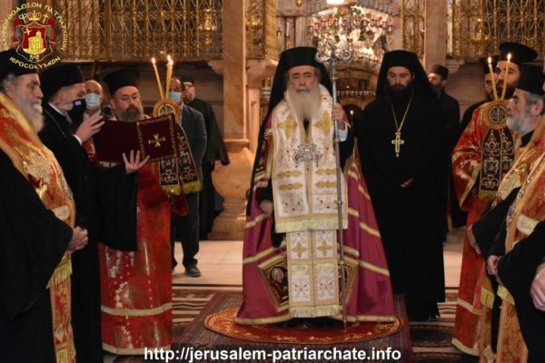 Στη Δοξολογία χοροστάτησε ο Μακαριώτατος Πατριάρχης Ιεροσολύμων κ. Θεόφιλος με συγχοροστατούντων Αγιοταφιτών Αρχιερέων και πατέρων, ενώ παραβρέθηκε και ο Γενικός Πρόξενος της Ελλάδος στα Ιεροσόλυμα.