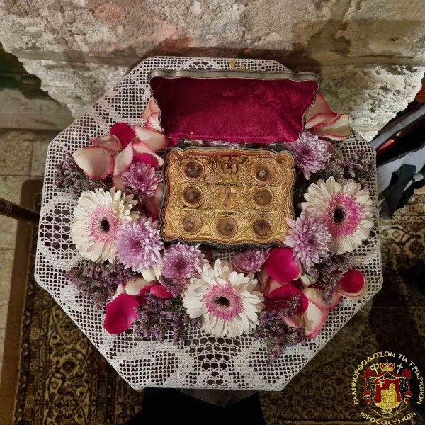 Κατά τη διάρκεια της θείας Λειτουργίας προσήλθε για προσκύνηση ο Μακαριώτατος Πατριάρχης Ιεροσολύμων κ.κ. Θεόφιλος με Αγιοταφίτες Πατέρες.