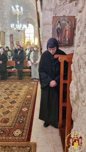 Για το λόγο αυτό η μνήμη του Αγίου Ευθυμίου ερτάσθηκε στην εν τη Παλαιά Πόλει Μονή με πανηγυρικό Εσπερινό την παραμονή και θεία Λειτουργία ανήμερα της εορτής, στην οποίαν προεξήρχε ο Σεβασμιώτατος Αρχιεπίσκοπος Γεράσων κ. Θεοφάνης συλλειτουργούντων των Αρχιμανδριτών π. Κλαυδίου και π. Ματθαίου, των Αραβοφώνων Πρεσβυτέρων π. Φάραχ και π. Νεκταρίου, του Αρχιδιακόνου π. Μάρκου και του Ιεροδιακόνου π. Δοσιθέου, ψάλλοντος του κ. Βασιλείου Γκοτσοπούλου και των μαθητών της Πατριαρχικής Σχολής και συμπροσευχομένων μοναχών, λαϊκών και Ιεροσολυμιτών πιστών.