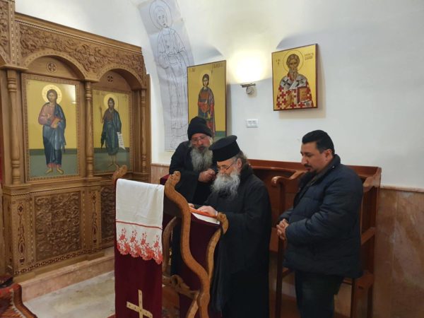 Διαρκούσης της θείας Λειτουργίας επεσκέφθη την Μονήν η Α.Θ.Μ. ο Πατριάρχης Ιεροσολύμων κ.κ. Θεόφιλος μετά Πατέρων Αγιοταφιτών.