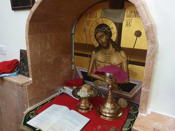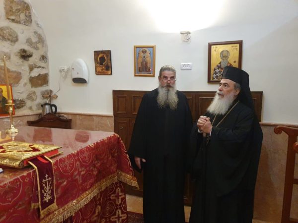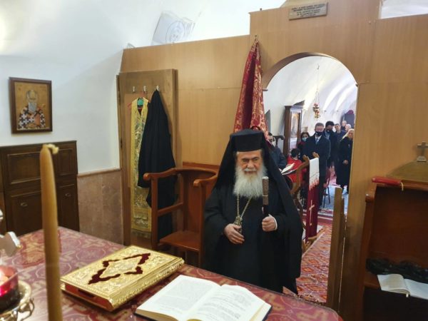 Διαρκούσης της θείας Λειτουργίας επεσκέφθη την Μονήν η Α.Θ.Μ. ο Πατριάρχης Ιεροσολύμων κ.κ. Θεόφιλος μετά Πατέρων Αγιοταφιτών.