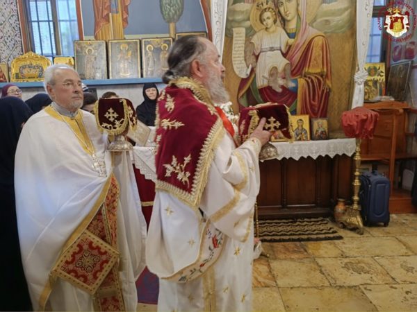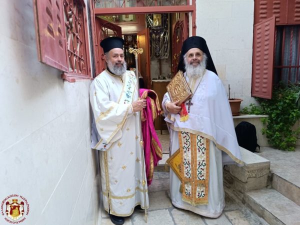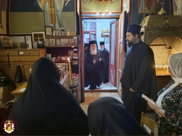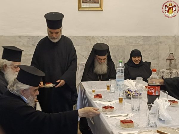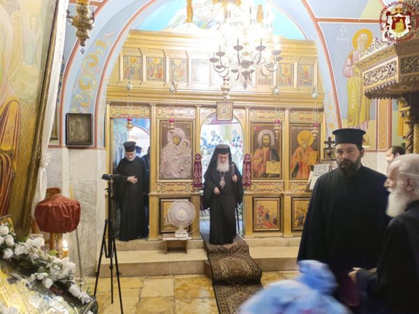 Κατά τη διάρκεια της Θείας Λειτουργίας επισκέφθηκε την Ιερά Μονή προς προσκύνηση η Α.Θ.Μ. ο Πατριάρχης Ιεροσολύμων κ.κ. Θεόφιλος μετά Πατέρων Αγιοταφιτών.