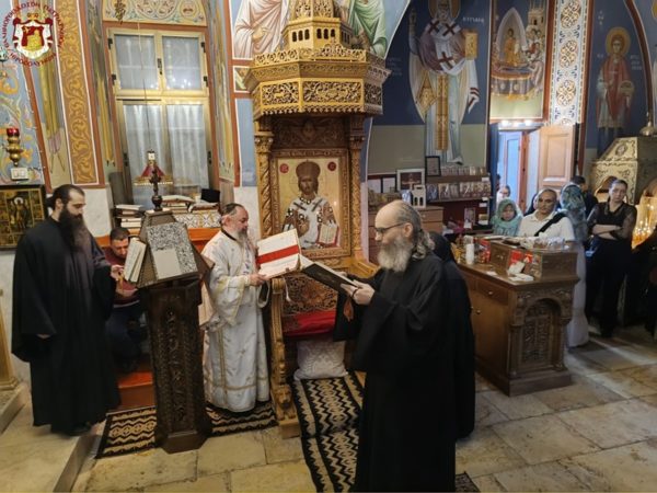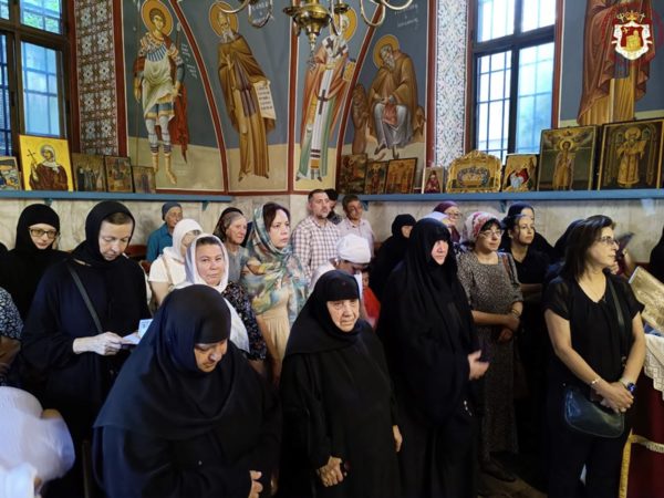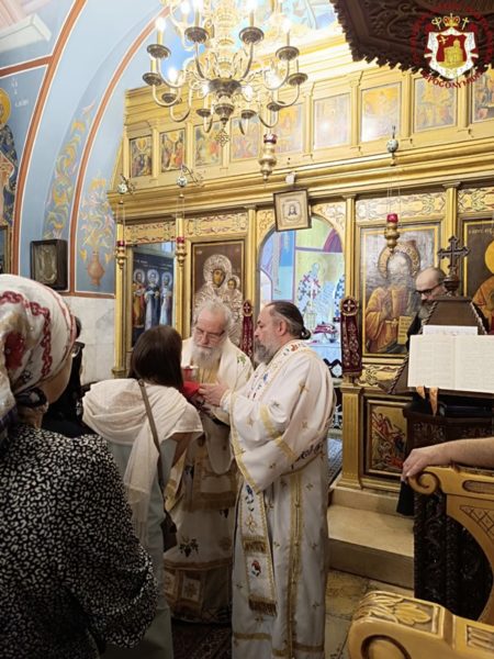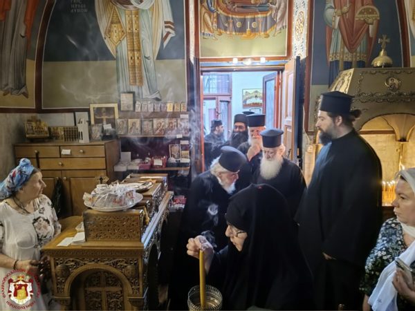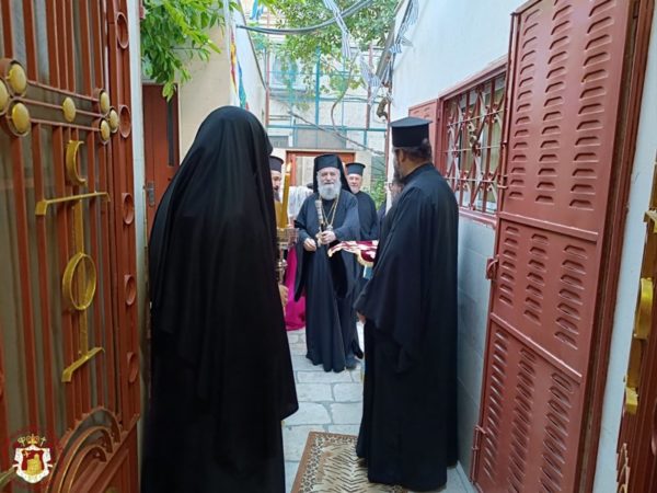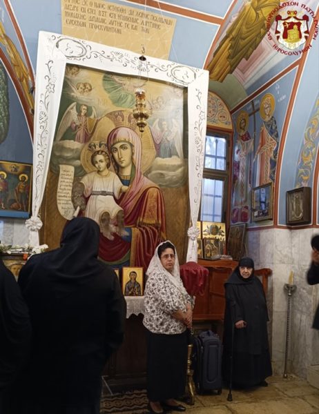 Την Πατριαρχική και Αρχιερατική συνοδεία δεξιώθηκε η καλώς συντηρούσα την Μονή και εκείνη που αγιογράφησε τον Ιερό Ναό καθηγουμένη μοναχή Χαριτίνη.