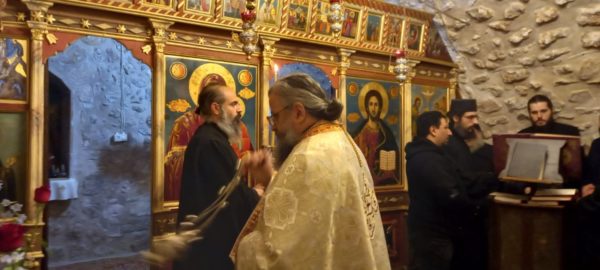 Tους ιερείς και το εκκλησίασμα δεξιώθηκε η οσιωτάτη μοναχή Μελάνη.