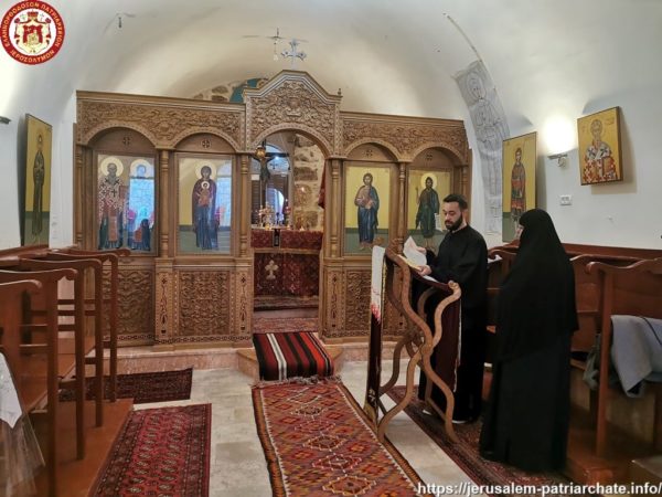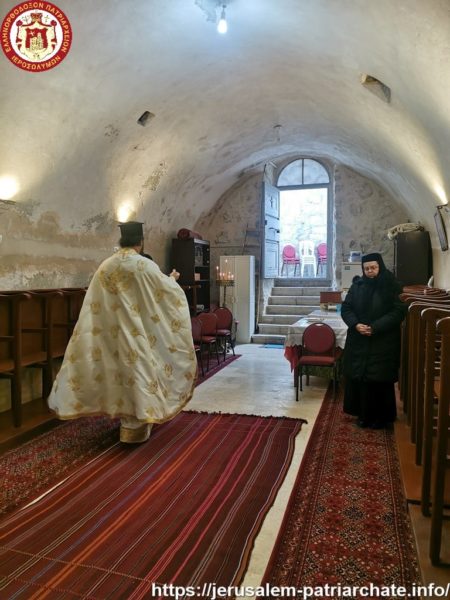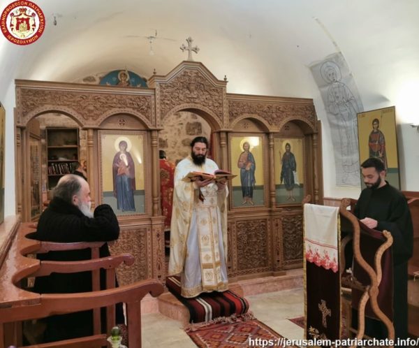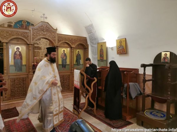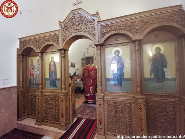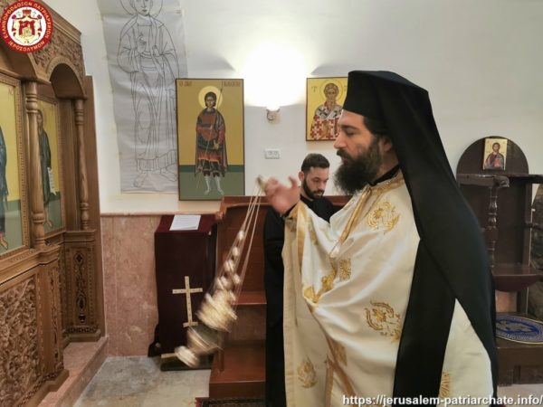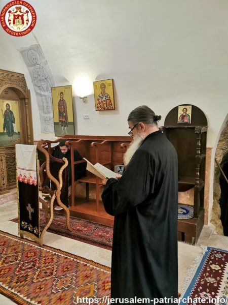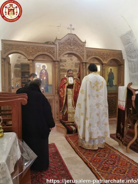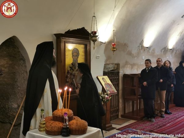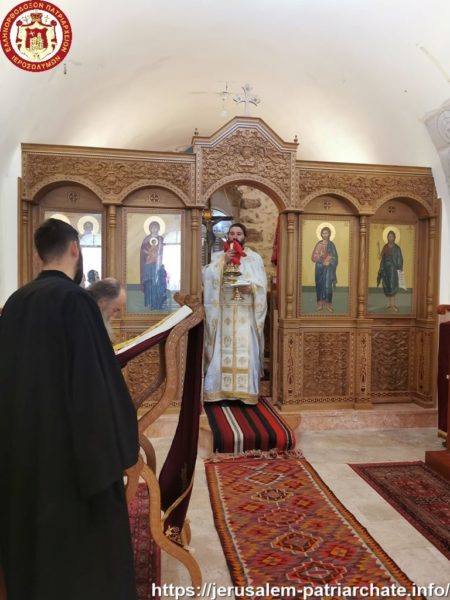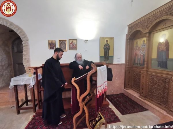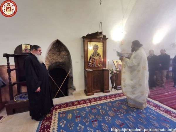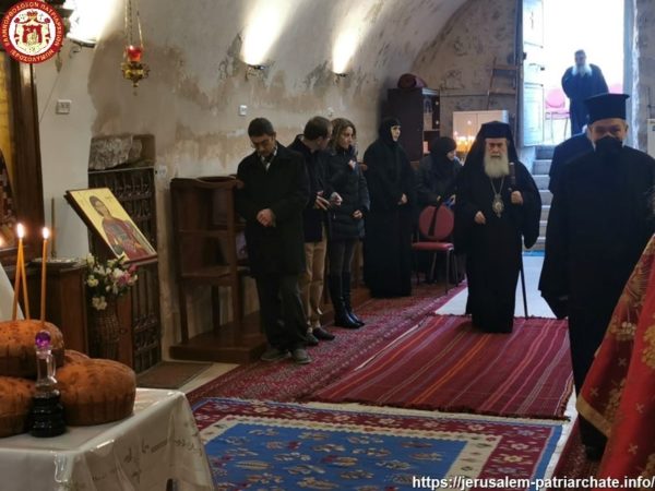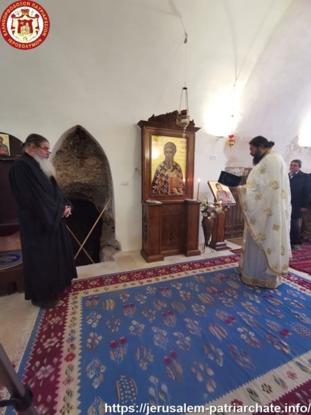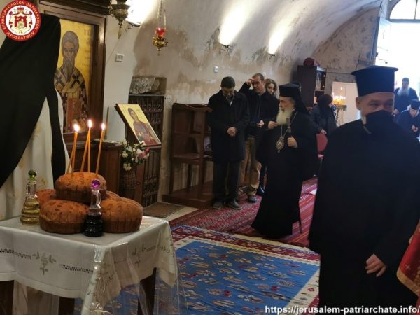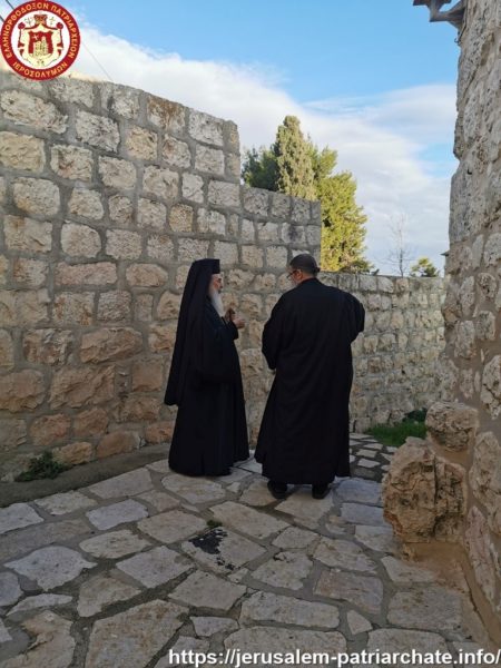 Διαρκούσης τῆς θείας Λειτουργίας προσῆλθε πρός προσκύνησιν ἡ Α.Θ.Μ. ὁ Πατήρ ἡμῶν καί Πατριάρχης Ἱεροσολύμων κ.κ. Θεόφιλος μετά μικρᾶς Συνοδείας, τούς ὁποίους καί ἐφιλοξένησεν διά κεράσματος ὁ φιλόπονος ἐπιστάτης καί ἀνακαινιστής τῆς Μονῆς μοναχός π. Ἀντίοχος.