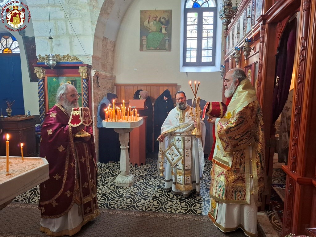 Επί τη εορτή τελέσθηκε Εσπερινός αφ’ εσπέρας και θεία Λειτουργία το πρωί, προεξάρχοντος του Σεβασμιωτάτου Μητροπολίτου Ελενουπόλεως κ. Ιωακείμ και συλλειτουργούντων των Αρχιμανδριτών π. Φιλουμένου και π. Θαδδαίου, του Ιερέως π. Νεκταρίου και του Ιεροδιακόνου π. Προδρόμου. Έψαλλε ο Πρωτοψάλτης του Πανιέρου Ναού της Αναστάσεως διάκονος π. Ευστάθιος, με συμμετοχή εκπροσώπων του Έλληνικού Γενικού Προξενείου, μοναχών, μοναζουσών, Ορθοδόξων της πόλεως των Ιεροσολύμων.
