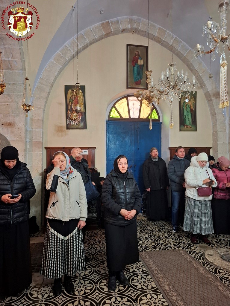 Επί τη εορτή τελέσθηκε Εσπερινός αφ’ εσπέρας και θεία Λειτουργία το πρωί, προεξάρχοντος του Σεβασμιωτάτου Μητροπολίτου Ελενουπόλεως κ. Ιωακείμ και συλλειτουργούντων των Αρχιμανδριτών π. Φιλουμένου και π. Θαδδαίου, του Ιερέως π. Νεκταρίου και του Ιεροδιακόνου π. Προδρόμου. Έψαλλε ο Πρωτοψάλτης του Πανιέρου Ναού της Αναστάσεως διάκονος π. Ευστάθιος, με συμμετοχή εκπροσώπων του Έλληνικού Γενικού Προξενείου, μοναχών, μοναζουσών, Ορθοδόξων της πόλεως των Ιεροσολύμων.