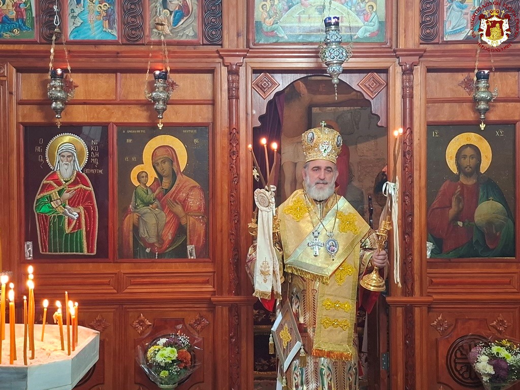 Μετά την Απόλυση της θείας Λειτουργίας, ο ηγούμενος Αρχιμανδρίτης π. Μακάριος δεξιώθηκε φιλοφρόνως την Αρχιερατική συνοδεία και το εκκλησίασμα.