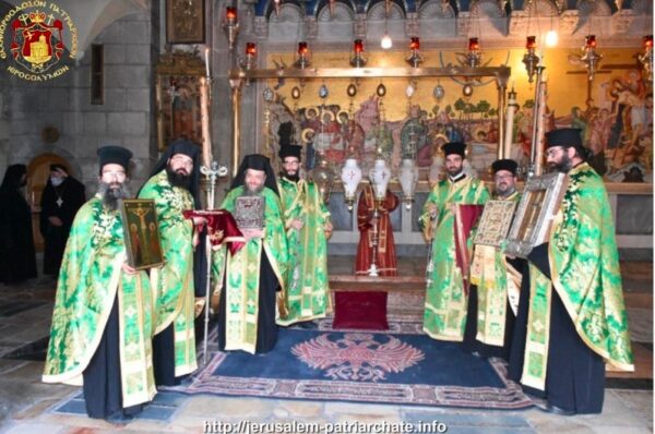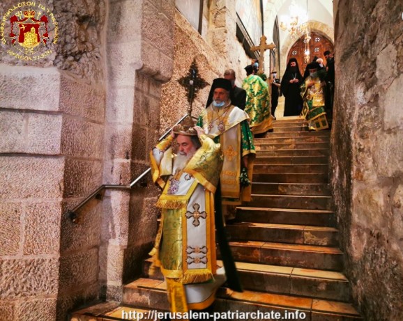 Σήμερον ἡ ἁγία ἡμῶν τῶν Ὀρθοδόξων Ἐκκλησία ἑορτάζει τήν Παγκόσμιον Ὕψωσιν τοῦ Τιμίου καί ζωοποιοῦ Σταυροῦ. Διό καί ἡ γεραρά Ἁγιοταφιτική ἡμῶν Ἀδελφότης, παρά τά ἐπιβληθέντα περιοριστικά μέτρα ἕνεκεν τῆς λοιμώδους νόσου τοῦ κορονοϊοῦ, κατῆλθεν εἰς τόν Πανίερον Ναόν τῆς Ἀναστάσεως, ἔνθα μετά παρρρησίας ἐτελέσαμεν τό μέγα μυστήριον τῆς θείας Εὐχαριστίας ἀφ’ ἑνός καί τήν τελετήν τῆς Ὑψώσεως τοῦ Τιμίου Σταυροῦ ἀφ’ ἑτέρου μετ’ ἐμποδίων, τόσον ἐν τῷ ἱερῷ τόπῳ τῆς ὑπό τῆς Ἁγίας Ἑλένης Εὑρέσεως αὐτοῦ, ὅσον καί ἐν τῷ Φρικτῷ Γολγοθᾷ, τῷ τόπῳ δηλονότι τῆς πήξεως αὐτοῦ καί τῆς ἐν αὐτῷ Σταυρώσεως τοῦ Σωτῆρος ἡμῶν Χριστοῦ.