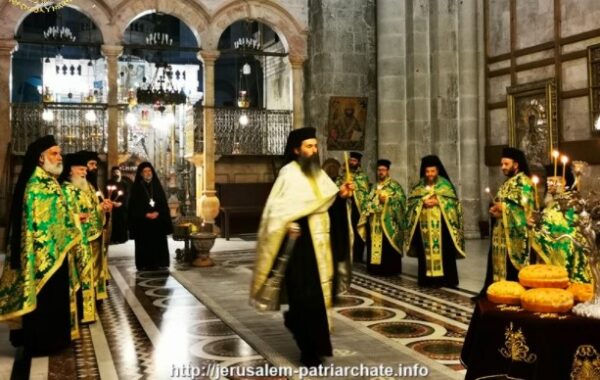 Στο Καθολικόν του Ναού της Αναστάσεως τελέστηκε Μέγας Εσπερινός μετ’ Αρτοκλασίας, Εσπερινός Παρρησίας μετά την υποδοχή και την προϋπάντηση στο προσκύνημα της Αγίας Αποκαθηλώσεως, τον Πανάγιον Τάφος και την προσκύνηση στο Φρικτό Γολγοθά υπό των Συνοδικών προεξάρχοντος της Α. Θ.Μ. Πατριάχου Ιεροσολύμων κ.κ. Θεοφίλου και συνιερουργούντων Αγιοταφιτών Πατέρων.