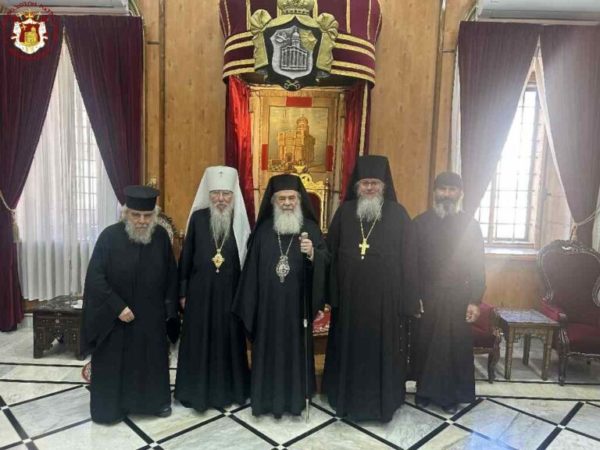 Τόν Σεβασμιώτατον Μητροπολίτην Βερολίνου κ. Μᾶρκον τῆς Ἐκκλησίας τῶν ROCOR, συνοδευόμενον ὑπό τοῦ Ἀρχιμανδρίτου π. Ρωμανοῦ, Προϊσταμένου τῆς Ἱερᾶς Μονῆς Ἐλαιῶνος καί Μαρίας Γεθσημανῆς. Ὁ Σεβασμιώτατος ἄγει τά πεντήκοντα ἔτη τῆς Ἱερωσύνης αὐτοῦ καί τά τεσσαράκοντα πέντε ἔτη της ἡλικίας αὐτοῦ. Ὁ Ἀρχιμανδρίτης π. Ρωμανός ἐνημέρωσε τόν Μακαριώτατον περί τοῦ σχολείου Γυμνασίου καί Λυκείου τῆς Ἐκκλησίας τῶν ROCOR εἰς Βηθανίαν, εἰς τήν ὁποίαν φοιτοῦν μέ ἀξιολόγους ἐπιδόσεις εἰς τάς εἰσαγωγικάς ἐξετάσεις πρός τό Πανεπιστήμιον τετρακόσιαι πεντήκοντα κορασίδες ἐκ τῆς Μουσουλμανικῆς θρησκείας καί περί τῆς ἐπιτυχίας αὐτῶν καί ἐνημέρωσεν Αὐτῷ καί περί τῶν προβλημάτων καί τῶν δοκιμασιῶν τῆς Ἐκκλησίας τοῦ Πατριαρχείου Μόσχας εἰς Οὐκρανίαν.