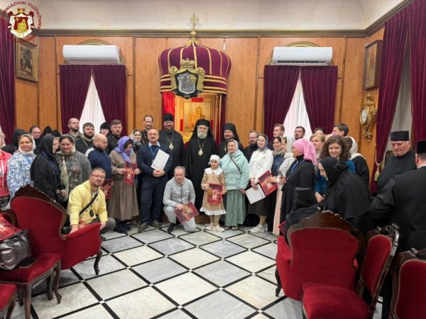 Εν συνεχεία, ο Πατριαρχικός Επίτροπος Σεβασμιώτατος Μητροπολίτης Καπιτωλιάδος κ. Ησύχιος υποδέχθηκε εξ ονόματος του Μακαριωτάτου πολυπληθή ομάδα προσκυνητών εκ Ρωσίας υπό τον Σεβασμιώτατον Μητροπολίτην Κοστρόμας κ. Θεράποντα και προσκυνητών εκ Ρουμανίας.