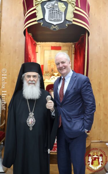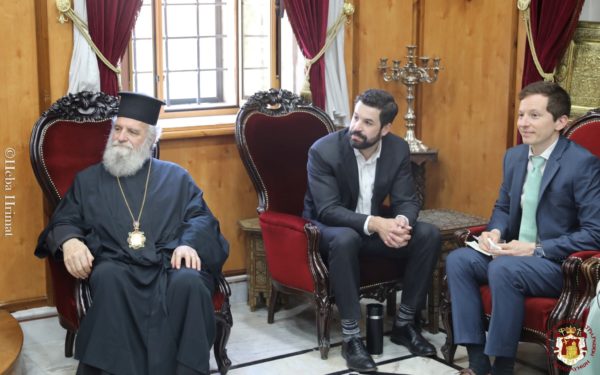 Ο Εξοχότατος Γερουσιαστής των ΗΠΑ Κρις Βαν Χόλλεν [Chris Van Hollen] επισκέφθηκε σήμερα το πρωί την έδρα του Πατριαρχείου Ιεροσολύμων, όπου τον υποδέχθηκε ο Μακαριώτατος Πατριάρχης Θεόφιλος Γ΄, Πατριάρχης της Αγίας Πόλης των Ιεροσολύμων.