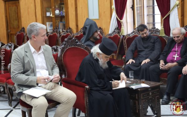 “Ὁ Μακαριώτατος Πατριάρχης Ἱεροσολύμων κ.κ. Θεόφιλος Γ’ ὑπεδέχθη τήν Παρασκευήν, 19ην Ἰουλίου 2024, τόν Ἀμερικανόν Γερουσιαστήν Chris Van Hollen ἐκ τῆς Πολιτείας Μέριλαντ τῶν Η.Π.Α., εἰς συνάντησιν εἰς τό Πατριαρχεῖον Ἱεροσολύμων.