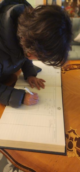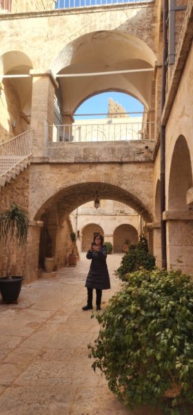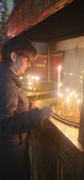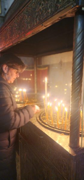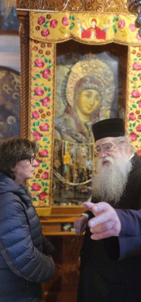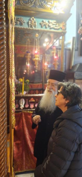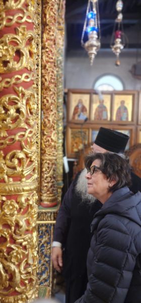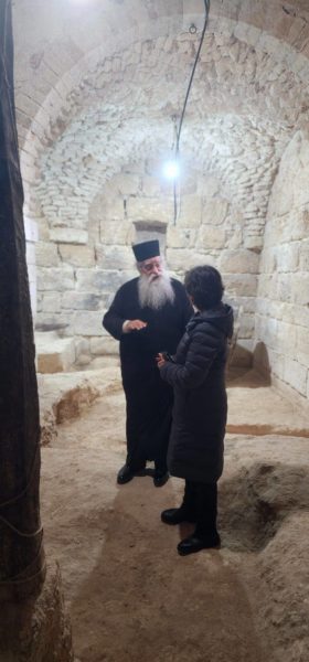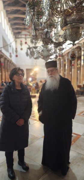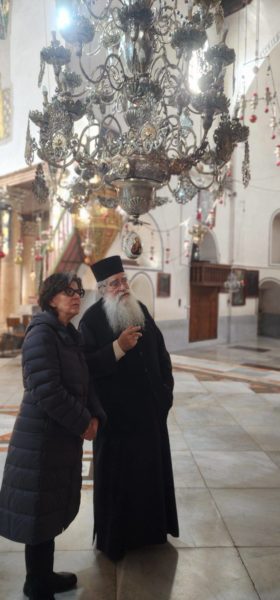 Ο Σεβασμιώτατος καλωσόρισε θερμά τις επισκέπτριες στη συνέχεια τις ξενάγησε στη Βασιλική της Γεννήσεως, παρουσιάζοντάς τους αναλυτικά τη θρησκευτική, πνευματική και ιστορική της σημασία. Επίσης έγινε ιδιαίτερη αναφορά στη μακραίωνη εκκλησιαστική παράδοση και στην πολύτιμη πνευματική κληρονομιά πίστης που διατηρεί ζωντανή ο τόπος αυτός στην καρδιά της Αγίας πόλης της Βηθλεέμ.
