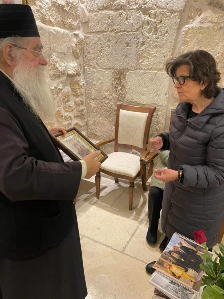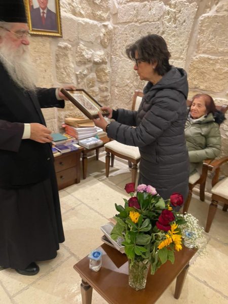Ο Μητροπολίτης Διοκαισαρείας κ. Βενέδικτος, Πατριαρχικός Επίτροπος στη Βηθλεέμ, μαζί με τον Οικονόμο π. Ήσσα Ταλτζίγιε, υποδέχθηκαν την Πέμπτη 19 Φεβρουαρίου 2026, την Λίνα Μαζχάρ Αννάμπ, πρώην Υπουργό Τουρισμού της Ιορδανίας, καθώς και τη μητέρα της, Σάρα Μπαρακάτ Αννάμπ.