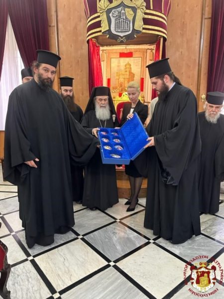 Την Παρασκευήν, 12ην / 25ην Νοεμβρίου 2022, ο Μακαριώτατος απένειμε το παράσημον του Ταξιάρχου του Τάγματος των Ιπποτών του Παναγίου Τάφου εις την Ρωσίδα προσκυνήτριαν κ. Elena Milskaya, διά τας εντόνους και κοπιώδεις προσπαθείας αυτής, προκειμένου να επανέλθουν εκ Ρωσίας τα εκ σμάλτου διακοσμήματα του υπερθύρου του Κουβουκλίου του Πανιέρου Ναού της Αναστάσεως, εικονίζοντα τον Αναστάντα Κύριον και τους Δώδεκα Αποστόλους.