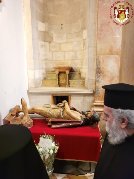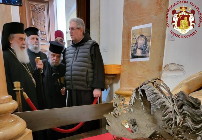 Ως συμπαράσταση για την επίθεση και προσβολή του παρεκκλησίου, η οποία είχε σαν αποτέλεσμα την κατάρριψη και θραύση της εικόνας του Εσταυρωμένου, ο Πατριάρχης Ιεροσολύμων κ.κ. Θεόφιλος επισκέφθηκε το παρεκκλήσιο και εξέφρασε τη λύπη του για το γεγονός.
