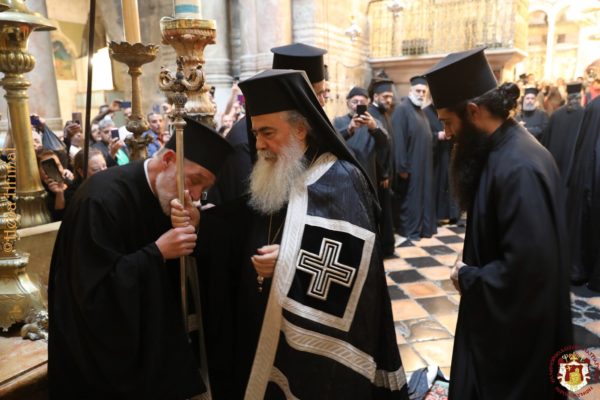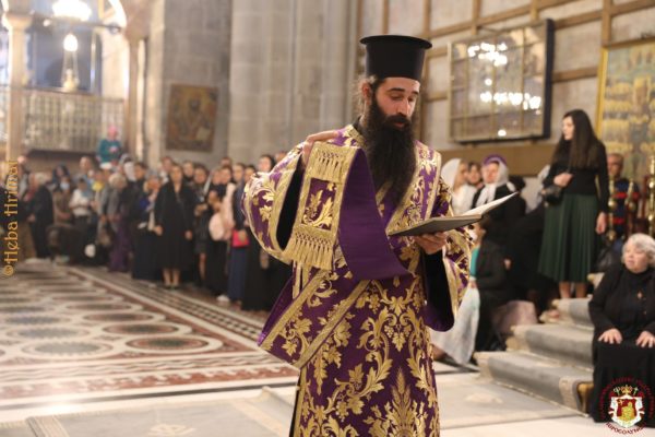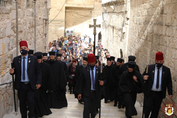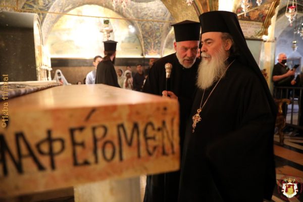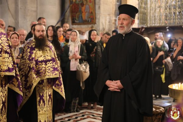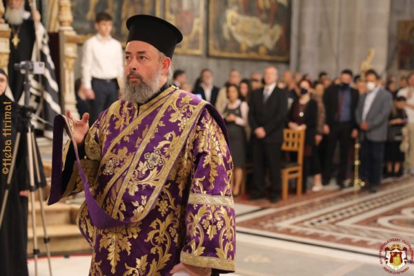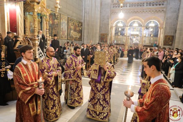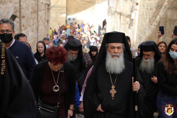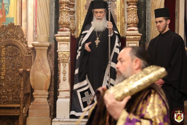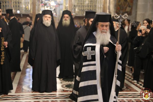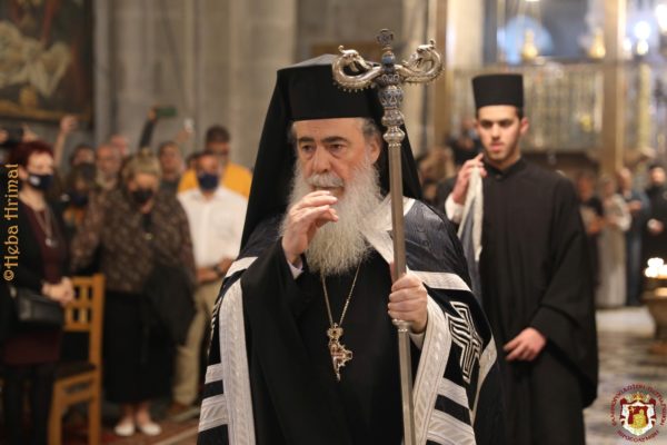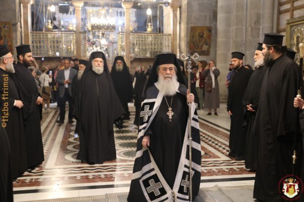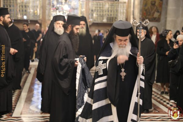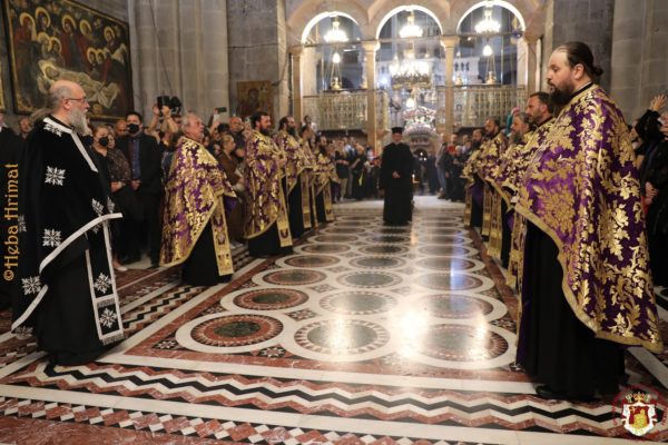 Της Ακολουθίας του Εσπερινού της Μεγάλης Παρασκευής προεξήρχε ο Μακαριώτατος Πατριάρχης Ιεροσολύμων κ.κ. Θεόφιλος στον Πανίερο Ναό της Αναστάσεως την Μεγάλη Παρασκευή 9/22 Απριλίου 2022, παρουσία πλήθους προσκυνητών.
