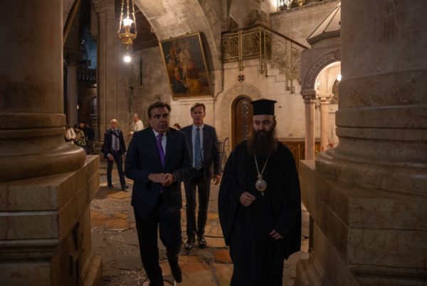 Η αντιπροσωπεία πραγματοποίησε επίσκεψη στον Πανίερο Ναό της Αναστάσεως και στη Χριστιανική Συνοικία της Παλιάς Πόλης. Εκεί, οι Ευρωπαίοι αξιωματούχοι είδαν από πρώτο χέρι τις επικείμενες απειλές από ριζοσπαστικές ισραηλινές ομάδες για τη χριστιανική παρουσία και την πλούσια κληρονομιά στην Ιερουσαλήμ.