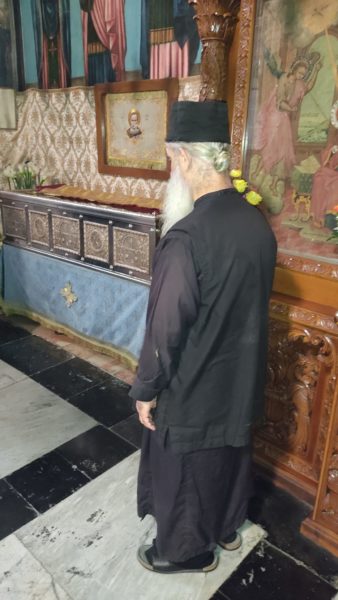 Μετά τις ευχές και το προσκύνημα στη λάρνακα του Αγίου Σάββα ο Γέροντας Ευδόκιμος ο οποίος αγωνίζεται καθημερινά για τα πανάγια προσκυνήματα στους Αγίους Τόπους, προσέφερε εόρτιο κέρασμα.
