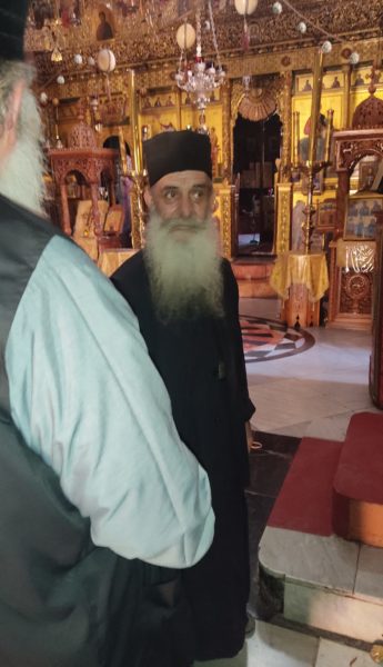 Τον εορτάζοντα Γέροντα Ευδόκιμο, τον πνευματικό της Ιεράς Λαύρας Αγίου Σάββα του Καθηγητού της Ερήμου της Ιουδαίας, προκειμένου να του ευχηθούν επισκέφθηκαν χθες ο Μητροπολίτης Διοκαισαρείας κ. Βενέδικτος, Πατριαρχικός Επίτροπος της Βηθλεέμ, μαζί με αγιοταφίτες.