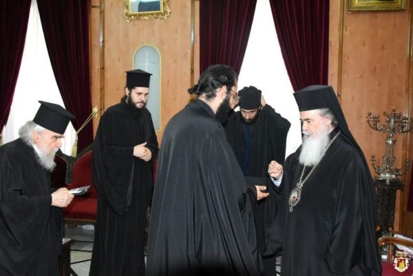 Τα ράσα δύο νέων δοκίμων, του Christian Toumbelekis και James Dipaola, ευλόγησε χθες ο το πρωί ο Πατριάρχης Ιεροσολύμων κ.κ. Θεόφιλος.