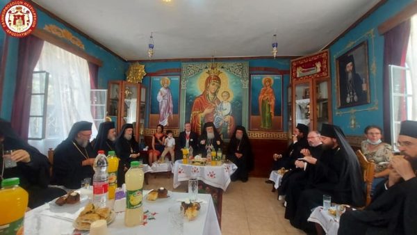 Μετά την πανηγυρική θεία Λειτουργία ο ηγούμενος του προσκυνήματος Αρχιεπίσκοπος Αβήλων κ. Δωρόθεος παρέθεσε κέρασμα αναψυχής στην Πατριαρχική Συνοδεία, τον κ. Γενικό και άλλους.