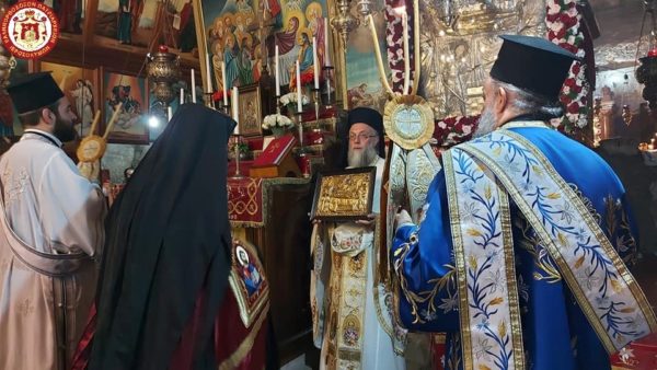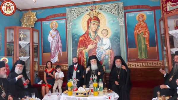 Μετά την πανηγυρική θεία Λειτουργία ο ηγούμενος του προσκυνήματος Αρχιεπίσκοπος Αβήλων κ. Δωρόθεος παρέθεσε κέρασμα αναψυχής στην Πατριαρχική Συνοδεία, τον κ. Γενικό και άλλους.