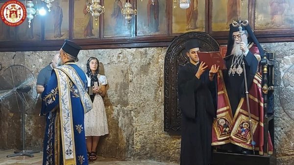 Χάριτι Θεοῦ εὑρισκόμεθα σήμερον ἐνώπιον τοῦ μνημείου τῆς Γεθσημανῆς, ἔνθα ἐτέθη τό δεδοξασμένον σῶμα τῆς Ὑπερενδόξου Δεσποίνης*3 ἡμῶν Θεοτόκου καί ἀειπαρθένου Μαρίας, ἵνα ἑορτίως τιμήσωμεν τήν μνήμην τῆς σεβασμίας Μεταστάσεως Αὐτῆς.