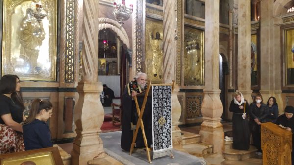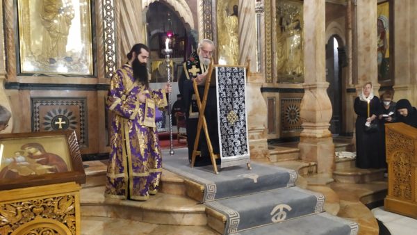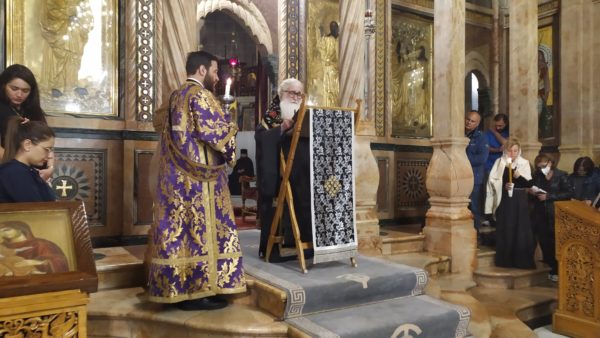 Το απόγευμα της Μεγάλης Πέμπτης τελέσθηκε στον Πανίερο Ναό της Αναστάσεως η Ακολουθία των Αγίων και Αχράντων Παθών του Κυρίου και Θεού και Σωτήρος ημών Χριστού, δηλαδή ο Όρθρος της Αγίας και Μεγάλης Παρασκευής.