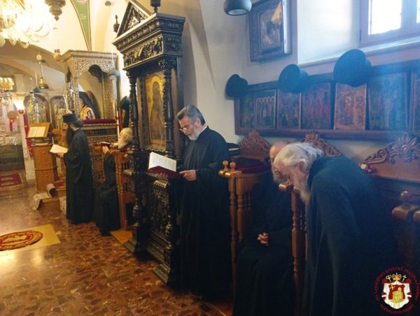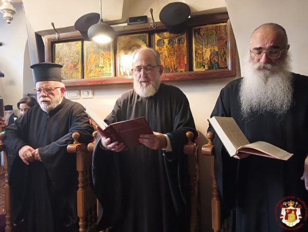 Προσευχήθηκαν Αγιοταφίτες Αρχιερείς και Ιερείς, οι εκπρόσωποι της Ρωσικής Εκκλησίας Αρχιμανδρίτης π. Αλέξανδρος και της Ρουμανικής Εκκλησίας Αρχιμανδρίτης π. Θεόφιλος.