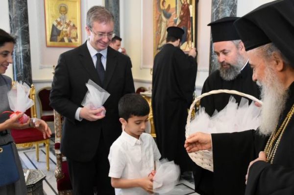 Κατά την απόλυση, των κωδώνων κρουομένων, η Πατριαρχική Συνοδεία ανήλθεν τα Πατριαρχεία, διενεμήθησαν τα πασχάλια αβγά, εψάλη ο Αναστάσιμος Ύμνος και έλαβε χώρα ο αδελφικός Πασχάλιος ασπασμός.