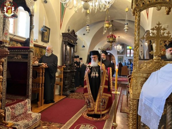 Της θείας Λειτουργίας τελουμένης υπό του εφημερίου του Ναού Αρχιμανδρίτου π. Αμφιλοχίου, προεξήρχε εν χοροστασία ο Πατριάρχης Ιεροσολύμων κ.κ. Θεόφιλος, συμπροσευχομένων των Αγιοταφιτών Αρχιερέων, Ιερέων και μοναχών, των εκπροσώπων του Πατριαρχείου Μόσχας Αρχιμανδρίτου π. Βασιανού και της Συνοδείας αυτού της Εκκλησίας των ROCOR Αρχιμανδρίτου π. Ρωμανού και πιστών της Εκκλησίας Ιεροσολύμων και τιμητική παρουσία της εκπροσώπου του Ελληνικού Γενικού Προξενείου στα Ιεροσόλυμα Προξένου κ. Μάντικα Άννης.