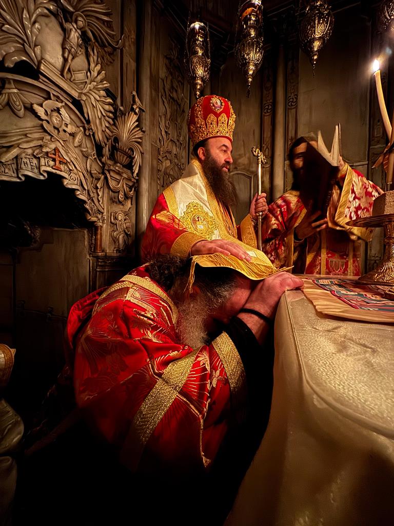 Αὐτή ἡ ἀναστάσιμη χαρά, πού πηγάζει ἀπό τόν Πανάγιο καί Ζωοδόχο Τάφο τοῦ Κυρίου μας καί διακατέχει σήμερα ὅλους τούς παρευρισκομένους Πατέρες στήν χειροτονία σου, εὔχομαι νά διώχνει μακρυά τή λύπη καί τό σκότος τῆς ἁμαρτίας καί νά σέ συνοδεύει σέ ὅλη σου τή ζωή.