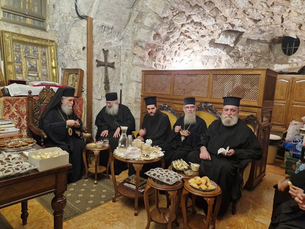 Αἱ εὐχαὶ τοῦ Μακαριωτάτου ἡμῶν Πατρὸς καὶ Πατριάρχου, τῶν μελῶν τῆς Ἁγίας καὶ Ἱερᾶς Συνόδου, καὶ πάντων τῶν Ἁγιοταφιτῶν ἀδελφῶν σου, σε συνοδεύουσιν πάντοτε· ἰδίᾳ δὲ κατὰ τὴν εὔσημον ταύτην καὶ ἱερὰν στιγμήν τῆς ζωῆς σου.