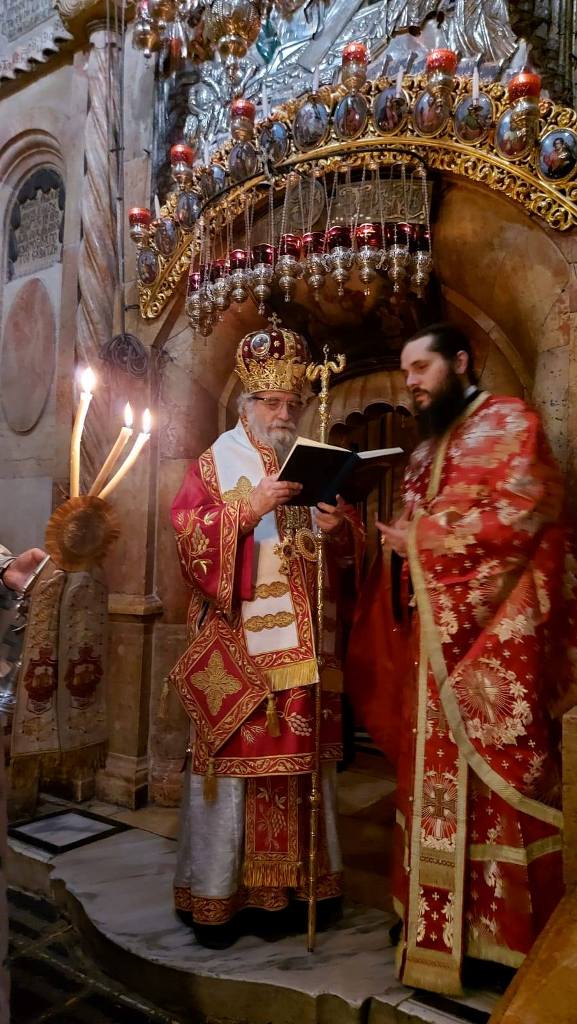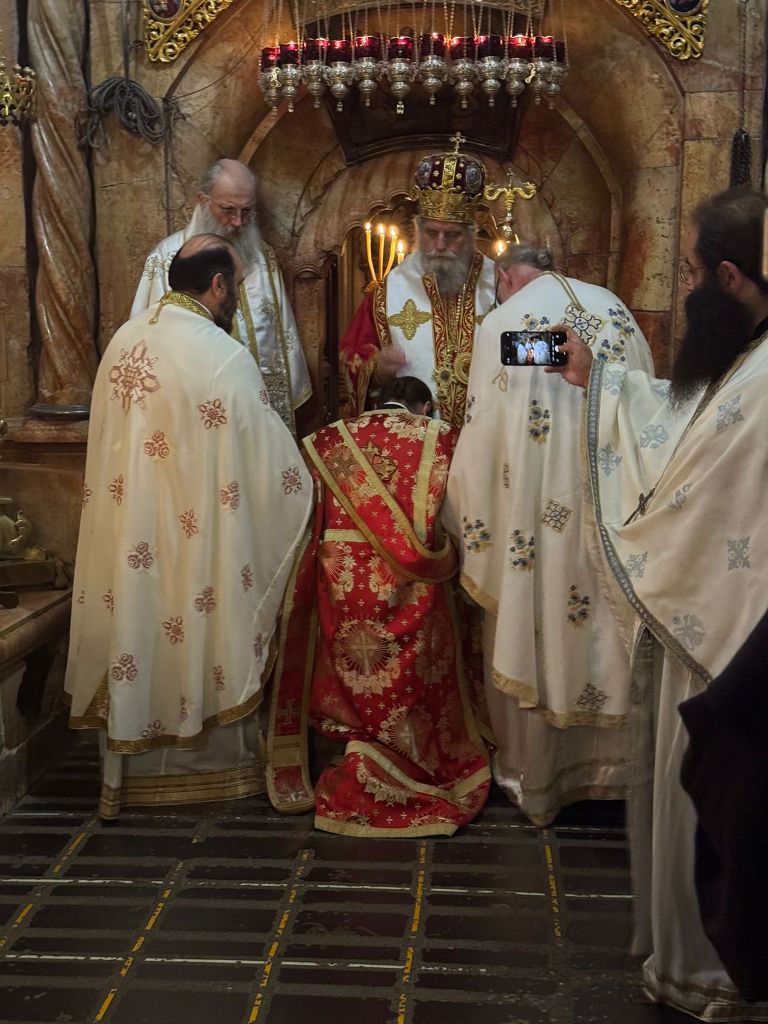 Διὰ τοῦτο, καὶ ὡς ὄντως μικροῦ διαστήματος πληρώσαντος χρόνους μακρούς, ἀξιοῖσαι σήμερον, τῇ χάριτι τοῦ Παναγίου Τάφου, τῆς εἰσδοχῆς σου εἰς τὸν δεύτερον βαθμὸν τῆς Ἱερωσύνης.