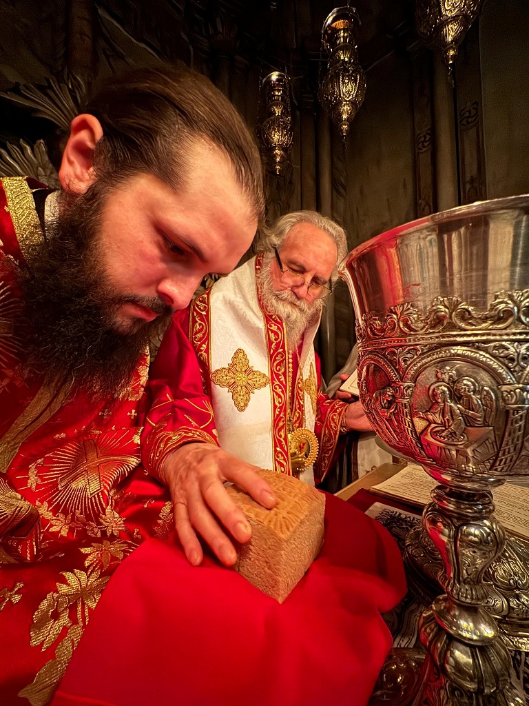 Κατά την διάρκεια της Θείας Λειτουργίας ο Μητροπολίτης Καπιτωλιάδος κ. Ησύχιος, κατόπιν ευλογίας του Πατριάρχη κ.κ. Θεοφίλου, τέλεσε την εις Πρεσβύτερον χειροτονία του διακόνου, Γραμματέα της Ιεράς Συνόδου και ιεροψάλτη του Ναού της Αναστάσεως, π. Συμεών.
