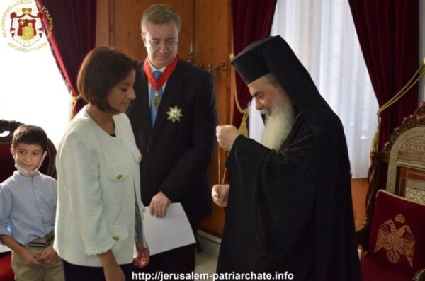 Σε αναγνώριση της συμπαραστάσεως του Υπουργείου Εξωτερικών της Ελλάδος και του ιδίου προσωπικώς προς το Πατριαρχείον, ο Μακαριώτατος απένειμε στον κ. Βλιώραν το παράσημο του Ανωτέρου Ταξιάρχου του Τάγματος των Ιπποτών του Παναγίου Τάφου, “ίνα διά της Χάριτος του Παναγίου Τάφου συνεχίζη την συνεργασίαν του με το Πατριαρχείον, προς σύσφιγξιν των δεσμών έθνους και Πατριαρχείου, διά την υποστήριξιν των δικαιωμάτων του έθνους μας εις την Αγίαν Γην, καθ’ ότι η Ελλάς είναι η προστάτις των δικαιωμάτων τούτων, αναγνωριζομένων διεθνώς. Ο Έλλην Γενικός Πρόξενος έχει πρωτεύοντα ρόλον μεταξύ των Προξένων των άλλων κρατών”, αναφέρει η επίσημη ενημέρωση του Πατριαρχείου.