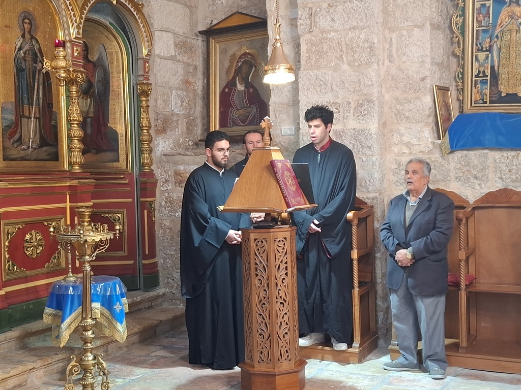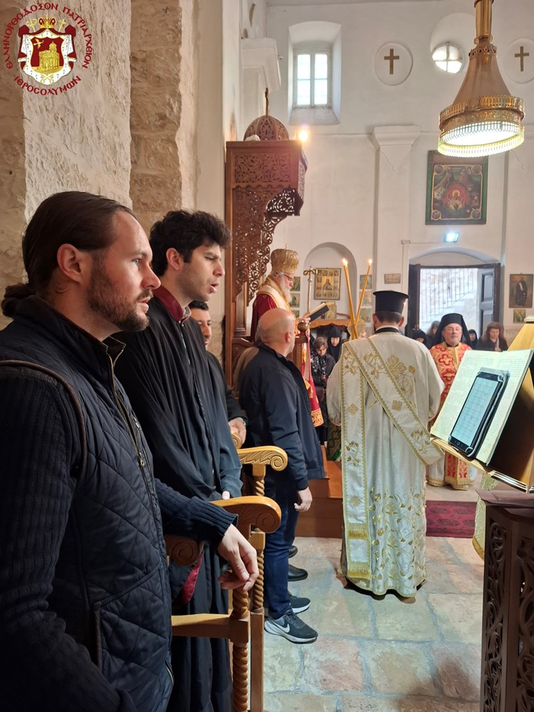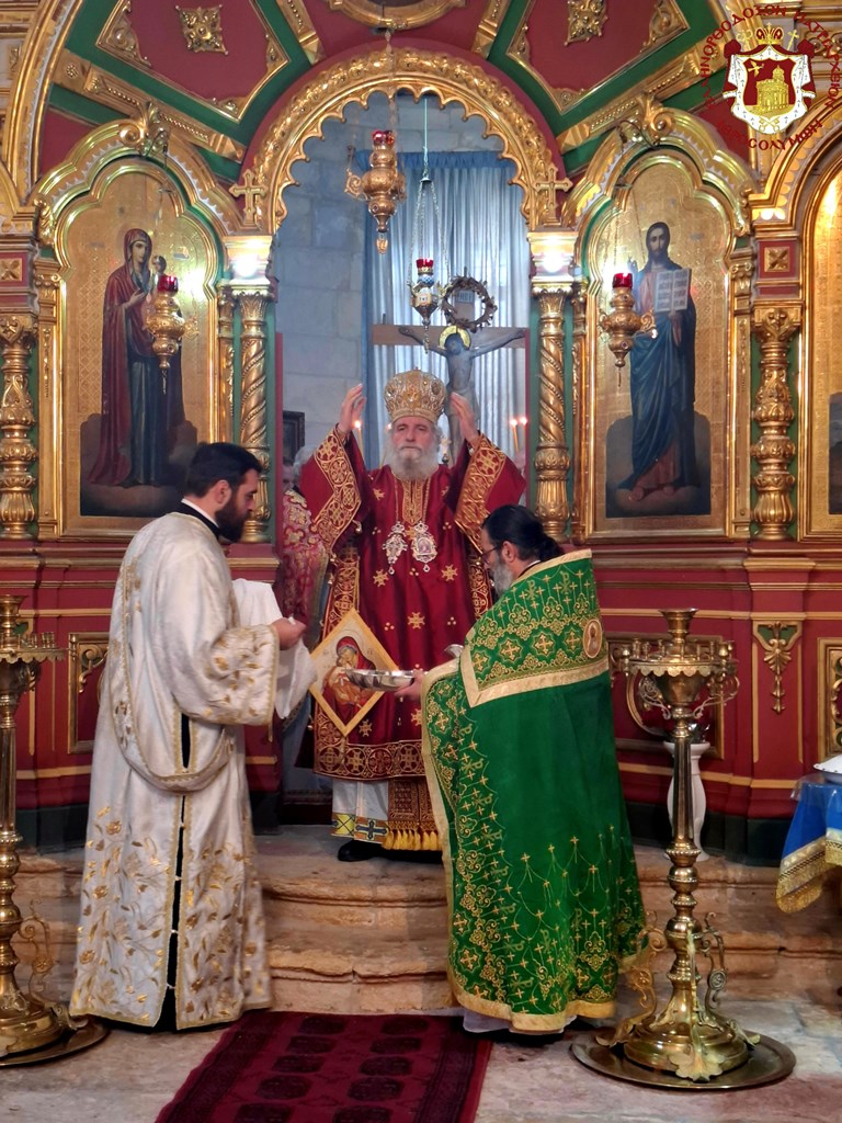 Προς τιμήν της Αγίας τελέσθηκε στην Ιερά Μονή Εσπερινός και θεία Λειτουργία προεξάρχοντος του Σεβασμιωτάτου Μητροπολίτου Καπιτωλιάδος κ. Ησυχίου, συλλειτουργούντων των Αρχιμανδριτών π. Φιλουμένου, π. Κλαυδίου, του Αραβοφώνου Πρεσβυτέρου π. Νεκταρίου και του Ιεροδιακόνου π. Ευλογίου. Έψαλλε ο κ. Άγγελος, ενώ προσευχητικώς μετείχαν μοναχοί, μοναχές και λαϊκοί Ιεροσολυμίτες και προσκυνητές.