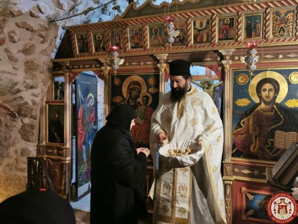 Μετά τήν θείαν Λειτουργίαν ἡ καθηγουμένη τῆς Ἱεράς Μονῆς, ἡ ἀνακαινίσασα τόν Ναόν αὐτῆς ὁσιωτάτη μοναχή Μελάνη, παρέθεσε κέρασμα εἰς τό ἐκκλησίασμα.