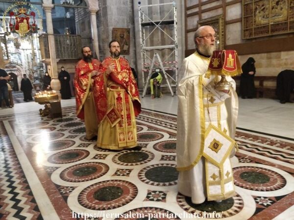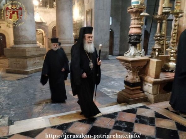 “Η εορτή αυτή εωρτάσθη ως συμπλήρωσις των τεσσαράκοντα αναστασίμων ημερών χαράς, ειρήνης και αγαλλιάσεως παρά του Αναστάντος Κυρίου ημών Ιησού Χριστού. Η εορτή αυτή εωρτάσθη ως η ημέρα του Πάσχα. Κατ’ αυτήν, εκτός των Βιβλικών Αναγνωσμάτων εψάλησαν τα τροπάρια ως και τη ημέρα του Πάσχα. Διά την εορτήν ταύτην ετελέσθη θεία Λειτουργία εις τον Ναόν της Αναστάσεως μετά περιωρισμένου αριθμού πιστών, προεξάρχοντος του Σεβασμιωτάτου Μητροπολίτου Καπιτωλιάδος κ. Ησυχίου. Εις την Λειτουργίαν ταύτην κατήλθεν κατά το έθος η Α.Θ.Μ. ο Πατήρ ημών και Πατριάρχης Ιεροσολύμων κ.κ. Θεόφιλος μετά των Αγιοταφιτών Πατέρων άμα τη Απολύσει της ακολουθίας των εις τον μοναστηριακόν Ναόν των αγίων Κωνσταντίνου και Ελένης. Μετά την Λειτουργίαν εις τον Ναόν της Αναστάσεως, η Αρχιερατική Συνοδεία υπέβαλε τα σέβη αυτής προς τον Μακαριώτατον εις το Πατριαρχείον”, αναφέρει η ανακοίνωση της Αρχιγραμματείας.