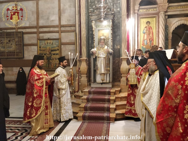 “Η εορτή αυτή εωρτάσθη ως συμπλήρωσις των τεσσαράκοντα αναστασίμων ημερών χαράς, ειρήνης και αγαλλιάσεως παρά του Αναστάντος Κυρίου ημών Ιησού Χριστού. Η εορτή αυτή εωρτάσθη ως η ημέρα του Πάσχα. Κατ’ αυτήν, εκτός των Βιβλικών Αναγνωσμάτων εψάλησαν τα τροπάρια ως και τη ημέρα του Πάσχα. Διά την εορτήν ταύτην ετελέσθη θεία Λειτουργία εις τον Ναόν της Αναστάσεως μετά περιωρισμένου αριθμού πιστών, προεξάρχοντος του Σεβασμιωτάτου Μητροπολίτου Καπιτωλιάδος κ. Ησυχίου. Εις την Λειτουργίαν ταύτην κατήλθεν κατά το έθος η Α.Θ.Μ. ο Πατήρ ημών και Πατριάρχης Ιεροσολύμων κ.κ. Θεόφιλος μετά των Αγιοταφιτών Πατέρων άμα τη Απολύσει της ακολουθίας των εις τον μοναστηριακόν Ναόν των αγίων Κωνσταντίνου και Ελένης. Μετά την Λειτουργίαν εις τον Ναόν της Αναστάσεως, η Αρχιερατική Συνοδεία υπέβαλε τα σέβη αυτής προς τον Μακαριώτατον εις το Πατριαρχείον”, αναφέρει η ανακοίνωση της Αρχιγραμματείας.
