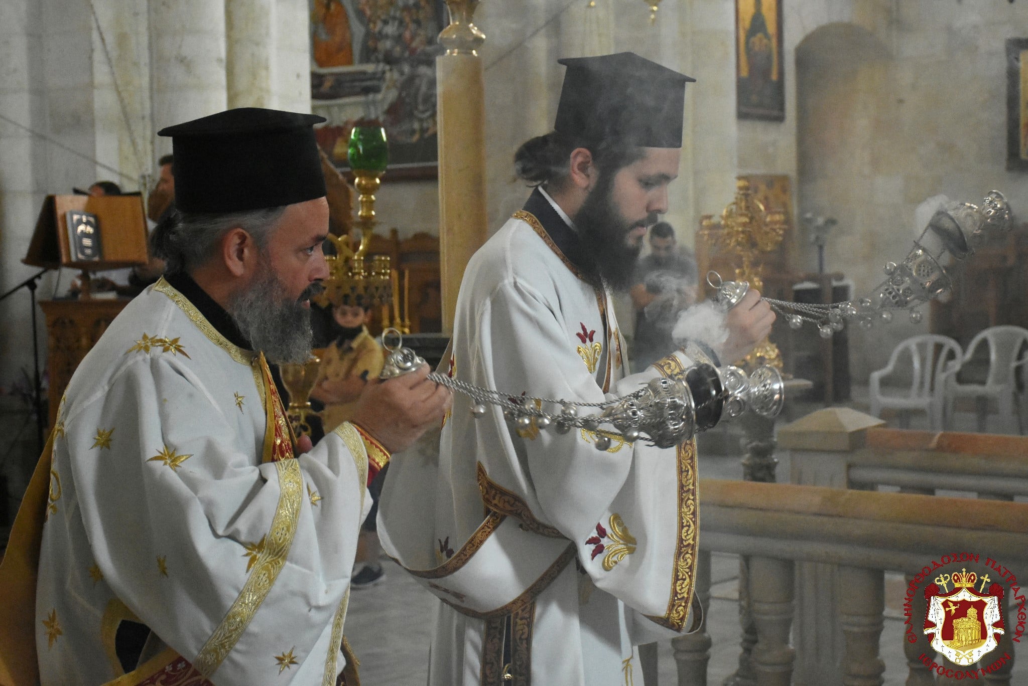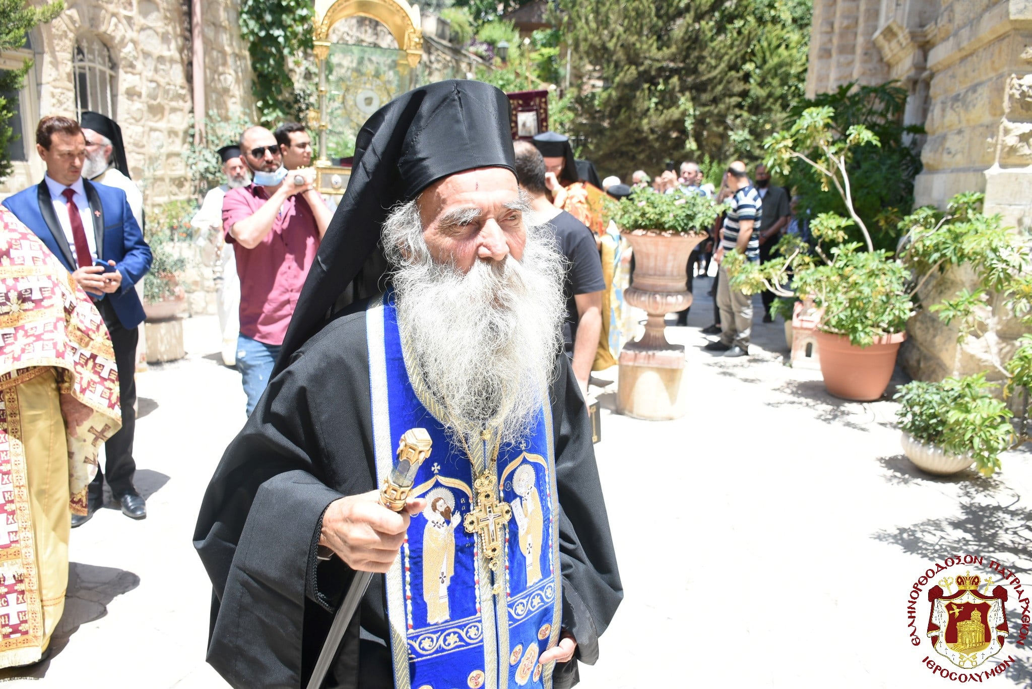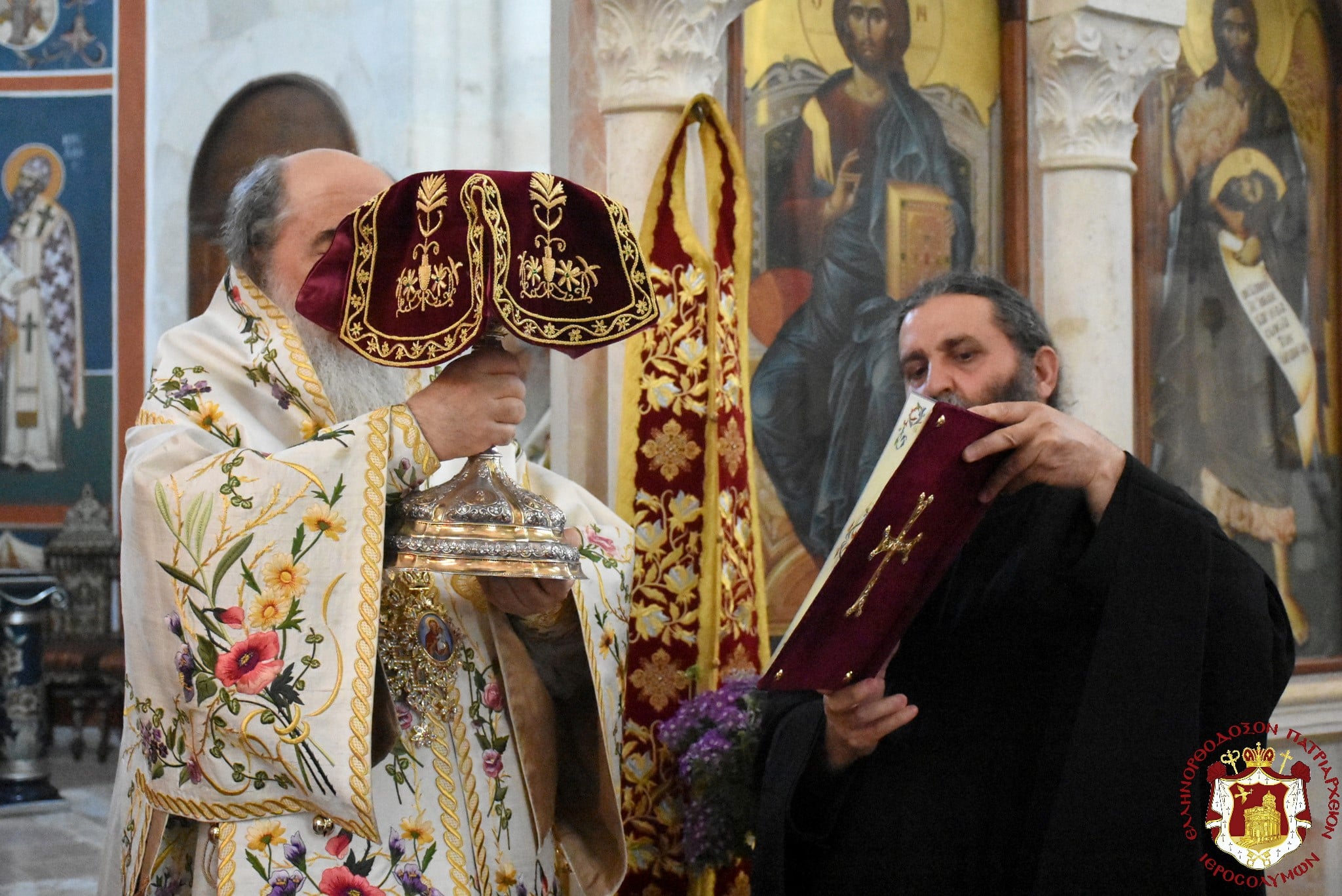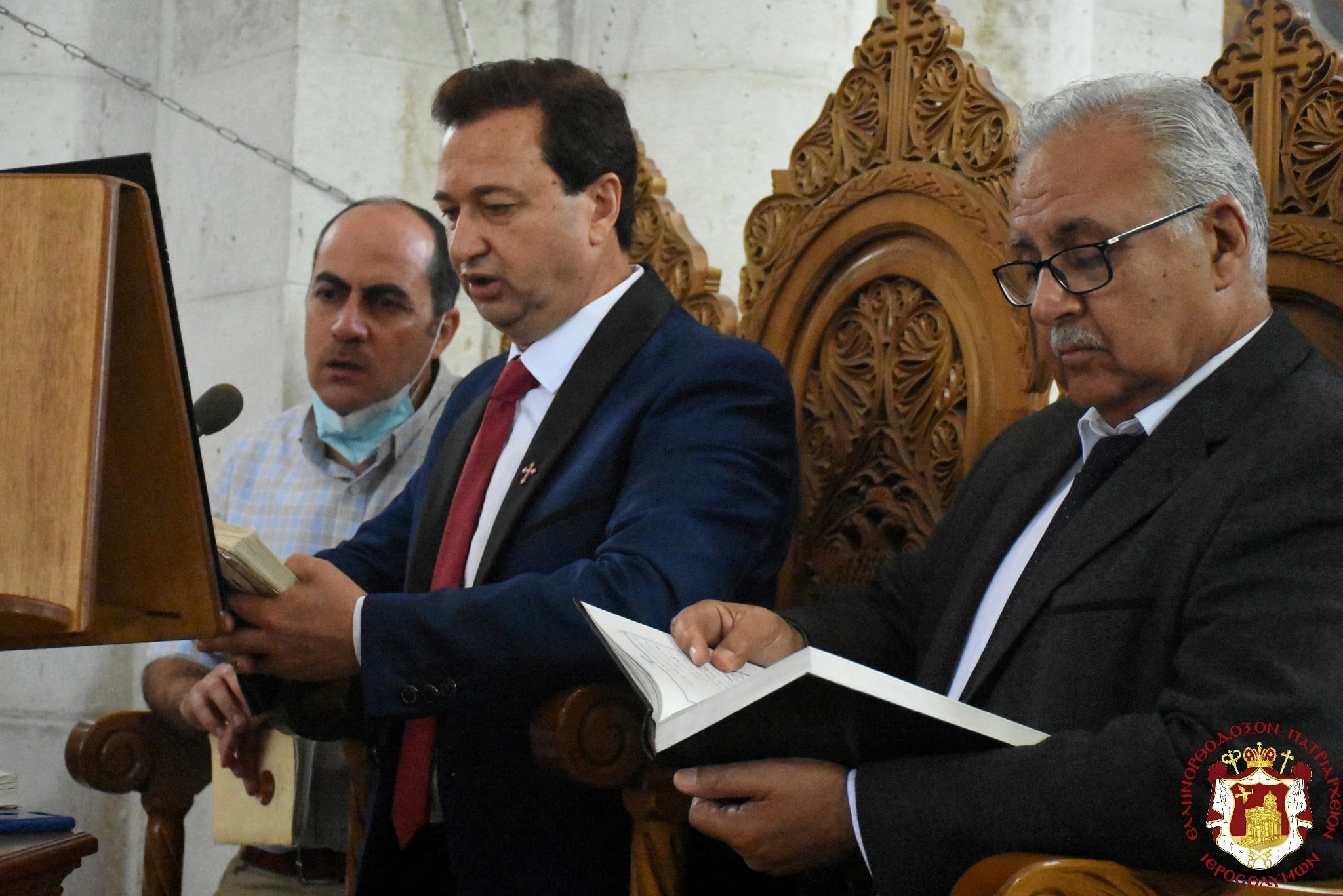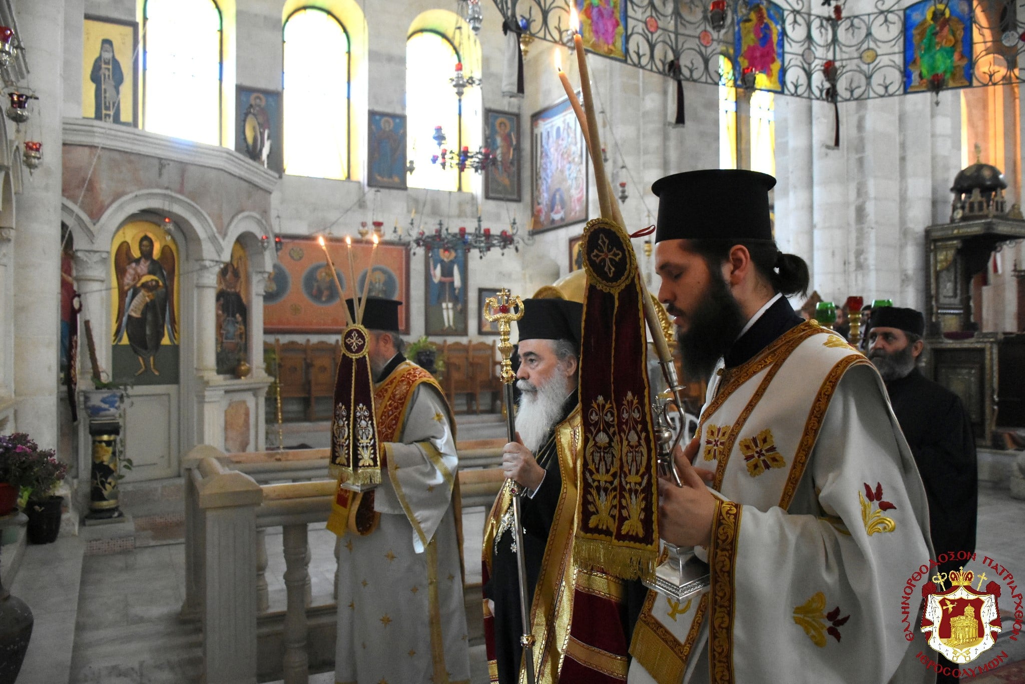 Μετά τοῦ Πατριάρχου συνελειτούργησεν ὁ Σεβασμιώτατος Μητροπολίτης Βόστρων κ. Τιμόθεος, ὁ Σεβασμιώτατος Ἀρχιεπίσκοπος Κωνσταντίνης κ. Ἀρίσταρχος Ἁγιοταφῖται Ἱερομόναχοι καί Ἀραβόφωνοι Πρεσβύτεροι καί διάκονοι ψαλλόντων τοῦ ἰατροῦ Γιακούμπι καί ἄλλων ψαλτῶν τῶν ὁμόρων ἐνοριῶν καί μετεχόντων πολλῶν πιστῶν ἰθαγενῶν καί προσκυνητῶν ἐξ Ἱερουσαλήμ καί τῶν περιοχῶν τῆς Νεαπόλεως, παρουσίᾳ τοῦ Γενικοῦ Προξένου τῆς Ἑλλάδος εἰς τά Ἱεροσόλυμα κ. Εὐαγγέλου Βλιώρα.