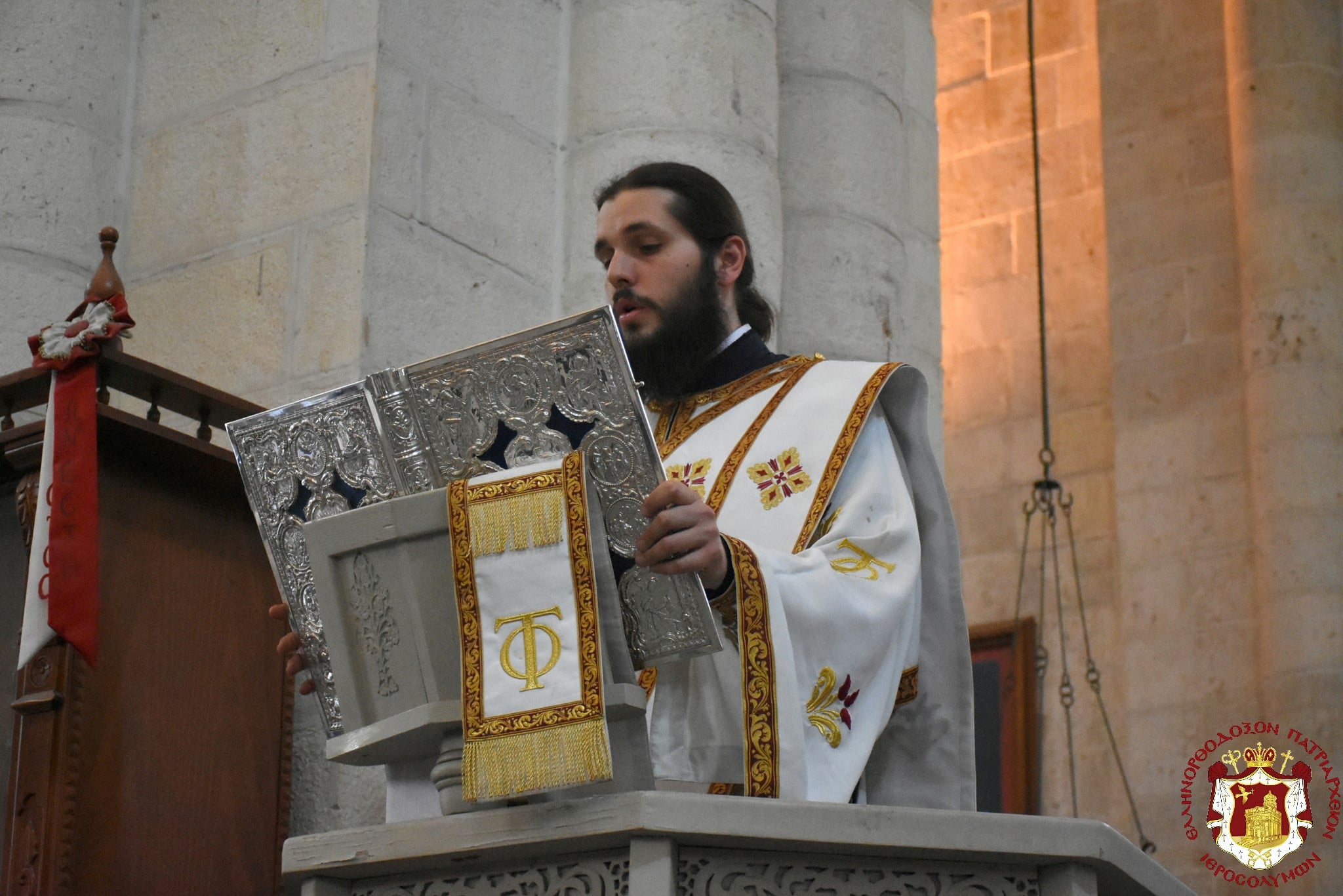 Εὐχαριστήσωμεν τῷ ἐκ Τάφου Ἀναστάντι Θεῷ καί Σωτῆρι ἡμῶν Κυρίῳ Ἰησοῦ Χριστῷ, τῷ ἀξιώσαντι ἡμᾶς ἑορτᾶσαι Πασχαλίως τήν ἑορτήν τῆς Σαμαρείτιδος γυναικός ἐν αὐτῷ τούτῳ τῷ τόπῳ τῆς πηγῆς τοῦ Ἰακώβ, ἔνθα ἡ Σαμαρεῖτις ἔπιε ἐκ τῶν πνευματικῶν ναμάτων τῆς δωρεᾶς τοῦ Θεοῦ.
