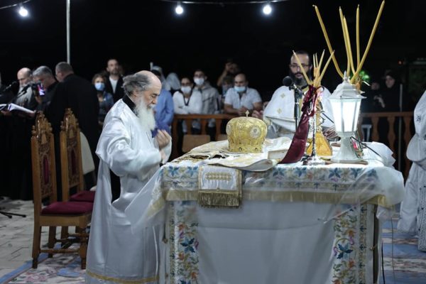 Έψαλλε ο Αρχιμανδρίτης π. Φιλόθεος με τη χορωδία του σε ελληνικά και αραβικά ενώ παρευρέθηκε και ο Γενικός Πρόξενος της Ελλάδος κ. Ευάγγελος Βλιώρας με λίγους πιστούς λόγω των μέτρων προστασίας από την πανδημία του κορωνοϊού.