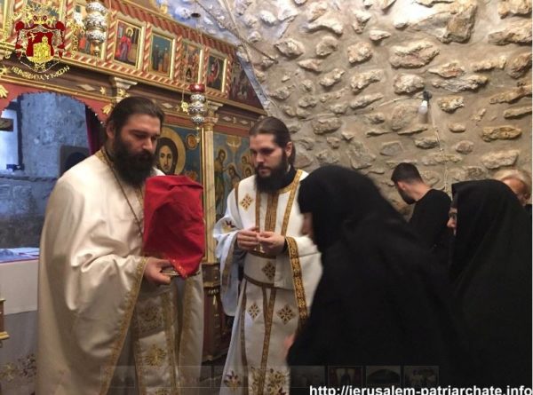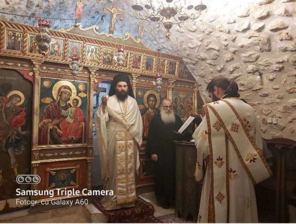 Μετά τη Θεία Λειτουργία η μοναχή καθηγουμένη Μελάνη, που έχει ανακαινίσει το Καθολικό της Μονής και καλώς συντηρήσει με τις δωρεές των προσκυνητών τις εικόνες της Μονής, δεξιώθηκε την Αρχιερατική Συνοδεία και όλο το εκκλησίασμα στο ηγουμενείο.
